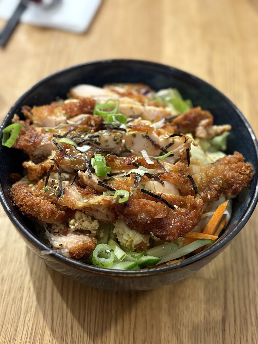 This place is absolutely amazing! The chicken rice bowl was so good I literally cleaned the plate. The fried chicken is perfectly seasoned with a soy sauce base, and when you eat it with the rice, it’s pure perfection. The food also came out super fast, and the soup was unbelievably good. But the best part? The staff (Vjosa) were insanely kind and friendly. Seriously, they were so nice that I voluntarily asked for their name just so I could write this review. (Not an ad, I swear ). I even heard other customers raving about how good the chicken rice bowl is, which really shows how loved this place is. The atmosphere was fantastic, the location is convenient, and now I completely understand why it has such high ratings. Honestly, it was perfect — please do yourself a favor and try the chicken rice bowl!